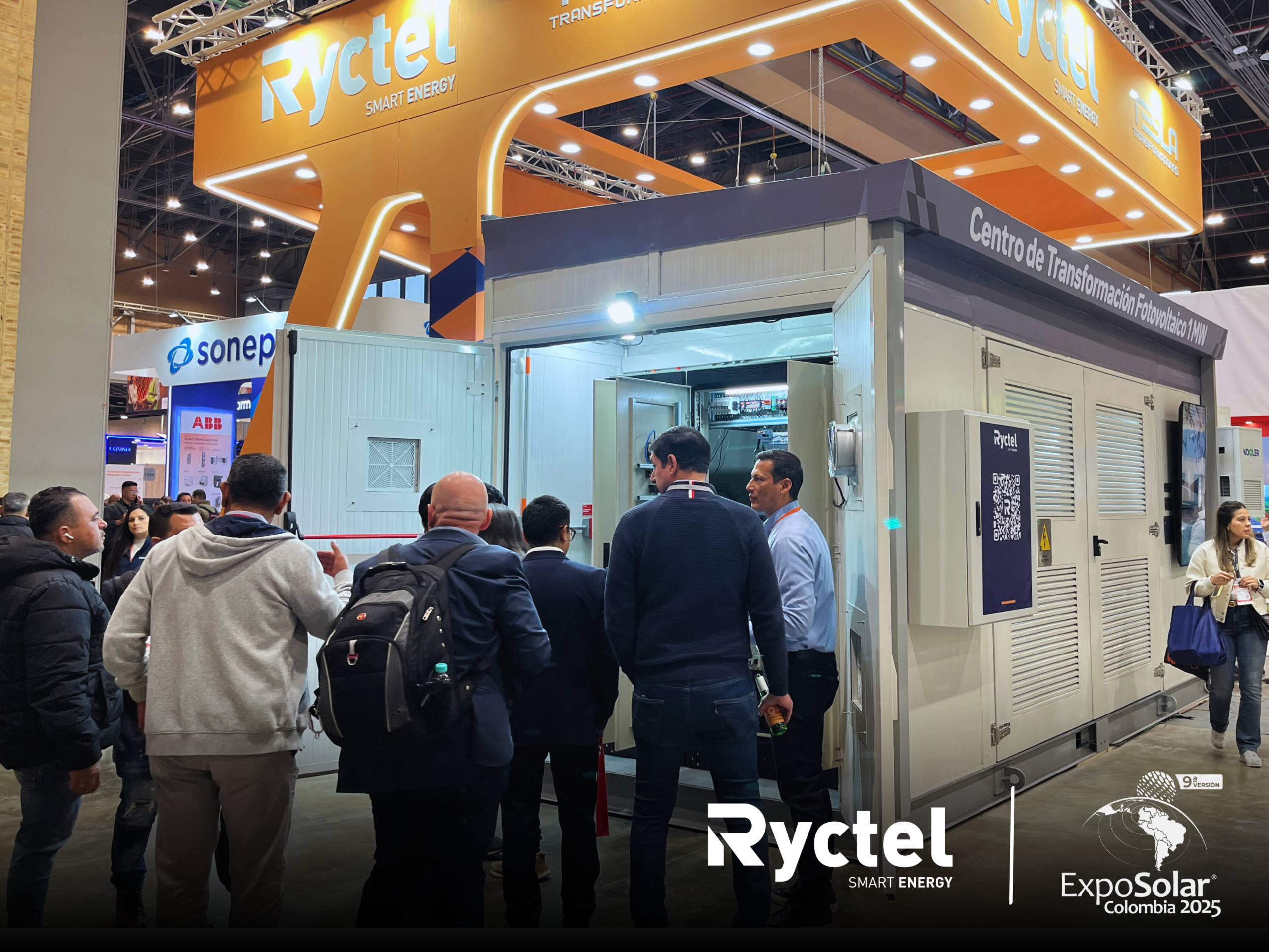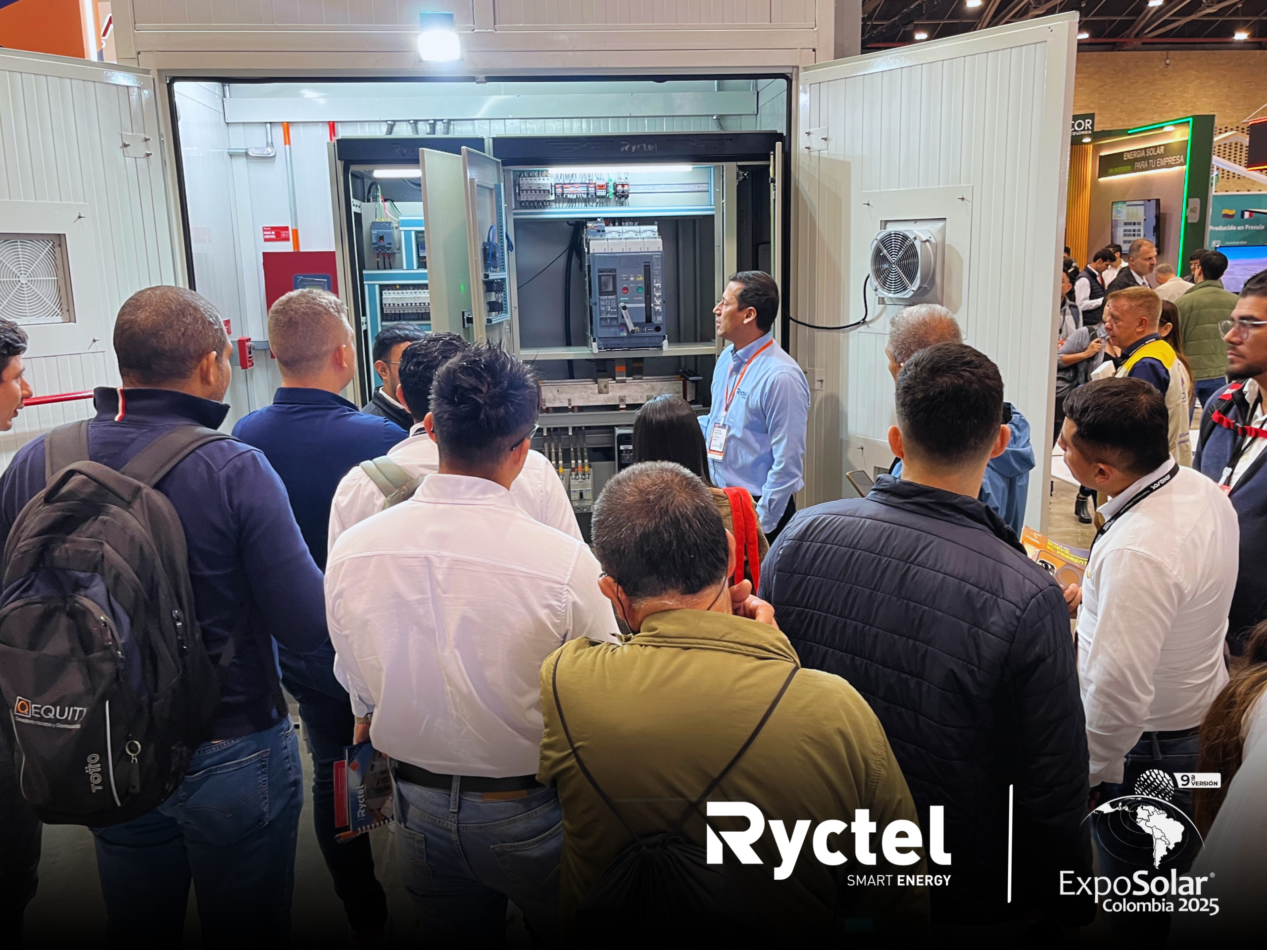 En su stand #433, Ryctel presentó su Centro de Transformación Fotovoltaico de 1 MW para Minigranjas Solares, un desarrollo tecnológico que captó la atención de visitantes y especialistas por su diseño, eficiencia y capacidad de integración en sistemas solares. Este equipo se convirtió en uno de los puntos más visitados de la feria, destacándose por su aporte al fortalecimiento de la infraestructura energética sostenible en Colombia.